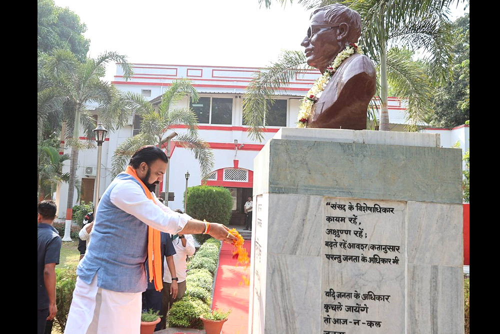 पटना, 18 अप्रैल 2026 :- मुख्यमंत्री श्री सम्राट चौधरी ने आज जननायक कर्पूरी ठाकुर स्मृति संग्रहालय, पटना के परिसर में स्थापित बिहार के पूर्व मुख्यमंत्री भारत रत्न जननायक कर्पूरी ठाकुर की प्रतिमा पर माल्यार्पण कर उन्हें नमन किया। स्मृति संग्रहालय भवन में जननायक कर्पूरी ठाकुर के तैलचित्र पर भी मुख्यमंत्री ने पुष्पांजलि अर्पित की। इसके पश्चात् मुख्यमंत्री ने जननायक कर्पूरी ठाकुर स्मृति संग्रहालय भवन के विभिन्न हिस्सों का निरीक्षण किया। निरीक्षण के क्रम में मुख्यमंत्री ने स्मृति संग्रहालय भवन के फोटो गैलरी में उनके मुख्यमंत्रित्व काल एवं संघर्षों से जुड़ी लगाई गई तस्वीरों का अवलोकन किया। इस दौरान मुख्यमंत्री ने जननायक कर्पूरी ठाकुर के शयन कक्ष, स्मृति संग्रहालय का पुस्तकालय, डायनिंग हॉल आदि का भी जायजा लिया। मुख्यमंत्री को अधिकारियों ने जननायक कर्पूरी ठाकुर स्मृति संग्रहालय के संबंध में विस्तृत जानकारी दी। अधिकारियों ने बताया कि यहां कर्पूरी ठाकुर जी के दैनिक जीवन से जुड़ी वस्तुओं को संरक्षित किया गया है। उनके कपड़े, चश्मा, कलम, स्नातक की मार्कशीट और स्कूल प्रमाण पत्र इस संग्रहालय में संरक्षित है। उनके मुख्यमंत्री कार्यकाल और स्वतंत्रता संग्राम से जुड़ी तस्वीरें एवं दस्तावेज मौजूद हैं।